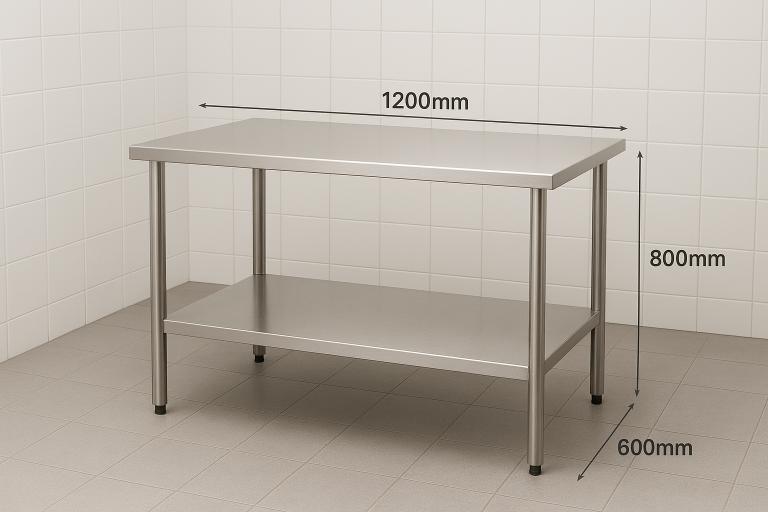 「作業台 1200×600×800」は、厨房の使いやすさを決める、仕込み作業の土台。 衛生的な環境で、効率的な作業スペースを確保します。